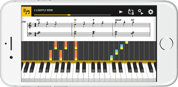 - Đối với các loại đàn khác (bao gồm acoustic piano): chỉ việc mở Chordana Play, nghe âm thanh, nhìn nốt nhạc và theo chuyển động phím đàn.